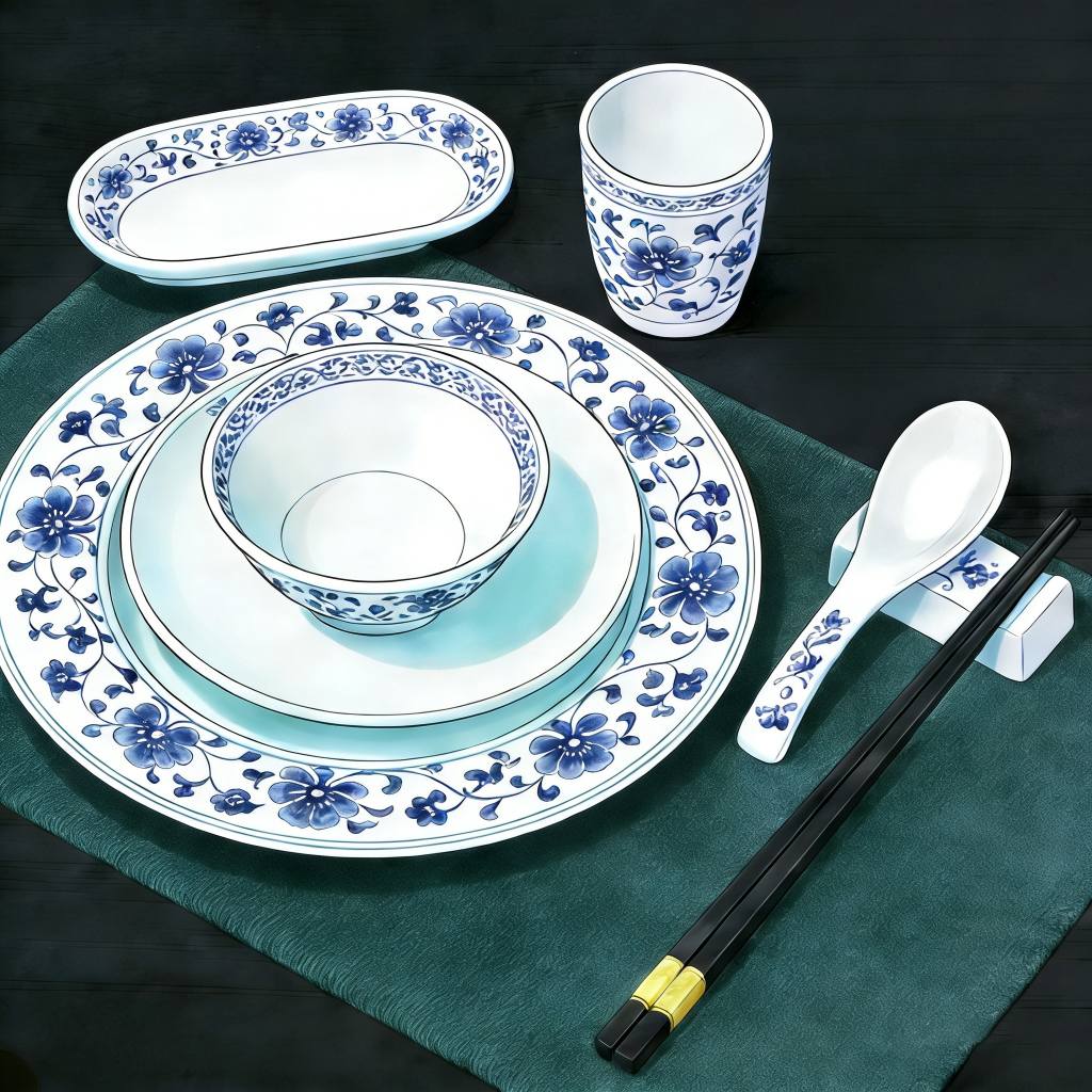 ເມື່ອເວົ້າເຖິງເຄື່ອງໃຊ້ໃນໂຕະ, ເຄື່ອງໃຊ້ຂອງຈີນທົ່ວໄປປະກອບມີຖ້ວຍ, ຈານ, ໂຖປັດສະວະ, ຖ້ວຍ, ຟັກ, ແລະບ່ວງ, ໂດຍທົ່ວໄປແລ້ວທັງຫມົດແມ່ນຈັດຢູ່ທາງຫນ້າຂອງອາຫານແຕ່ລະຄົນ. ໃນບັນດາສົນທິສັນຍາ, "ການປາດສະຈາກໄມ້ຄ້ອນເທົ້າໃນໂຖປັດສະວະ" ເປັນຂໍ້ຫ້າມທີ່ຫນ້າສົນໃຈ. ອັນນີ້ແມ່ນມາຈາກການປະຕິບັດຂອງຄົນຂໍທານບູຮານທີ່ຈະແຕະໃສ່ໂຖປັດສະວະຂອງເຂົາເຈົ້າເພື່ອດຶງດູດຄວາມສົນໃຈໃນເວລາຂໍທານ, ເຮັດໃຫ້ການກະທໍາດັ່ງກ່າວຖືວ່າເປັນຄວາມບໍ່ສຸພາບຢູ່ໃນໂຕະອາຫານ.