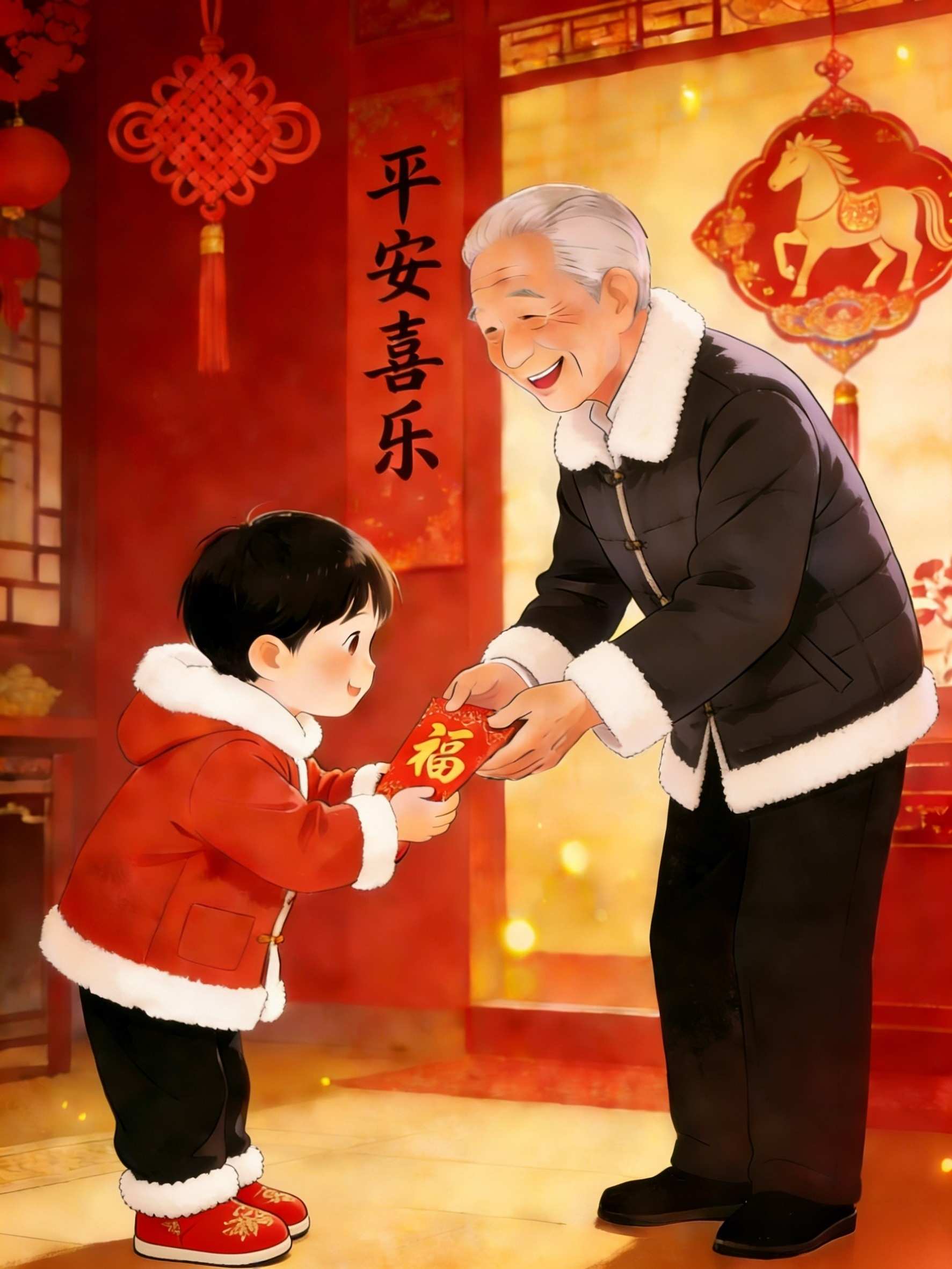 ຫຼັງຈາກຄ່ໍາ, ມັນເປັນປະເພນີທີ່ນິຍົມທີ່ສຸດທີ່ເດັກນ້ອຍໄດ້ຮັບເງິນໂຊກດີໃນຊອງຈົດຫມາຍສີແດງຈາກພໍ່ແມ່ແລະພໍ່ເຖົ້າແມ່ເຖົ້າ, ຫຼືຍາດພີ່ນ້ອງອື່ນໆ.
