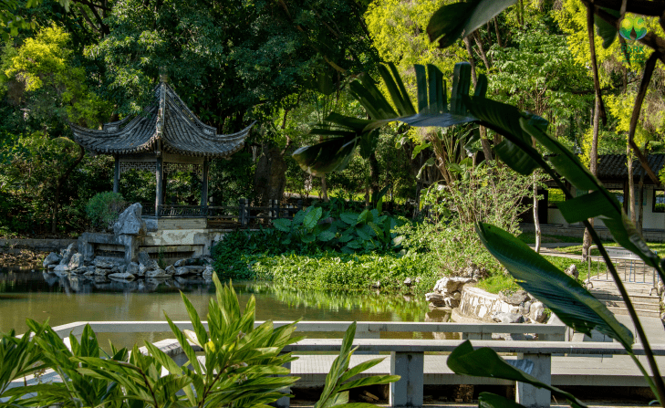 ມັນໄດ້ນໍາເອົາສິລະປະສວນທີ່ສວຍງາມເກືອບຮ້ອຍອັນໃນທົ່ວໂລກ, ມີທັດສະນະທີ່ສວຍງາມໃນທຸກໆດ້ານ, ຄ້າຍຄືຫໍພິພິທະພັນສວນ, ຊໍານິຊໍານານການຜະສົມພູມສັນຖານທໍາມະຊາດກັບສະຖາປັດຕະຍະກໍາທີ່ສ້າງຂຶ້ນໂດຍມະນຸດ, ສະແດງໃຫ້ເຫັນຄວາມອຸດົມສົມບູນຂອງສວນຕາເວັນອອກແລະຮູບແບບຂອງປະເທດຕ່າງໆ.
