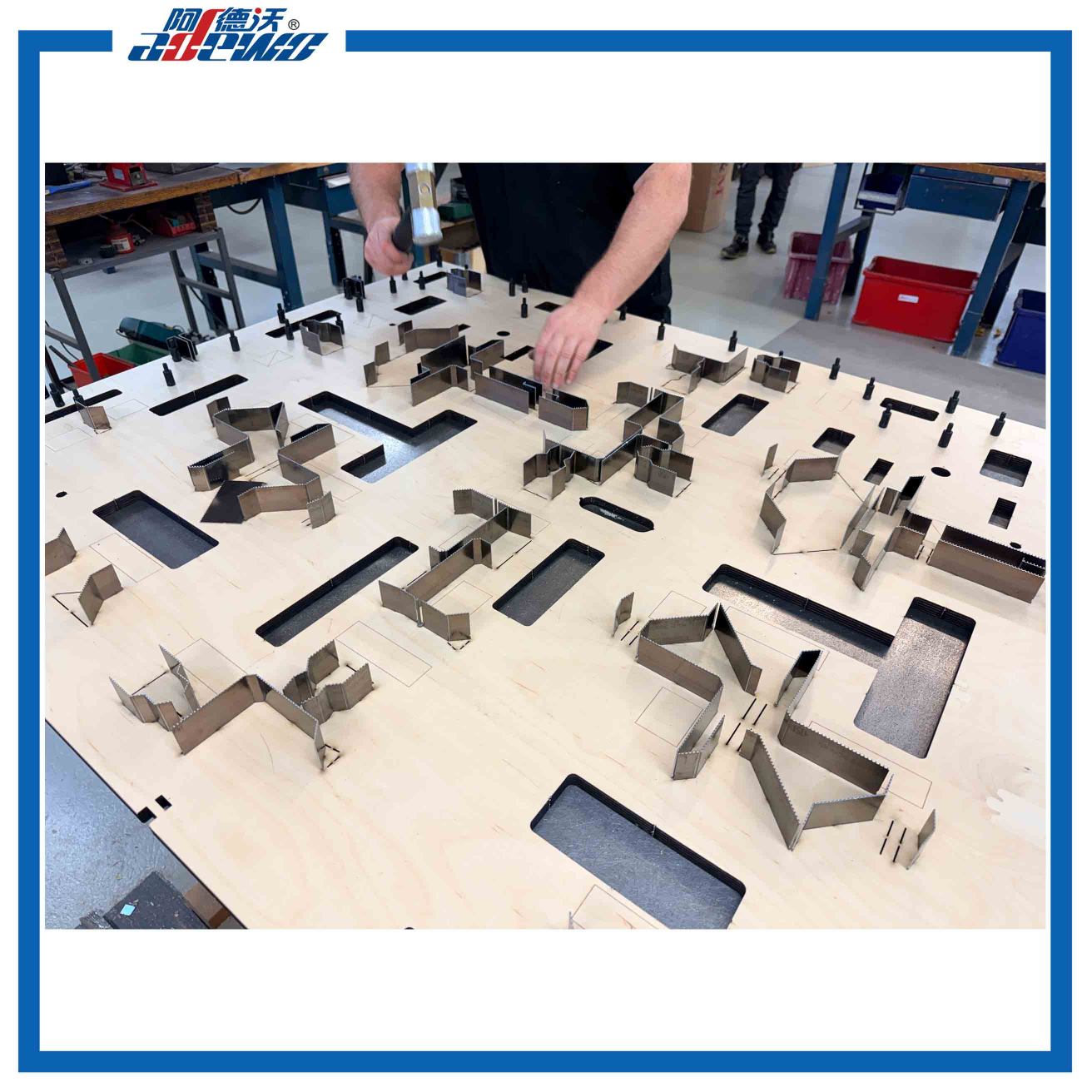 ABM-860B2 Stripping Tool Auto Bending Machine ປະກອບມີຫນ້າທີ່: ບິດ, ຂົວ, Nicking, Perforation, Lipping ແລະການຕັດ. ສະຫນັບສະຫນູນກົດລະບຽບເຫຼັກຫນາ 0.71,105,1.42mm, ຄວາມສູງ 23.80-60mm. ຈີນ Adewo ມີສອງໂຮງງານໃນປະເທດຈີນ, ຊ່ຽວຊານໃນການພັດທະນາແລະການຜະລິດອຸປະກອນການຕັດຕາຍລວມທັງເຄື່ອງຕັດ Laser CNC, ເຄື່ອງ Bender ອັດຕະໂນມັດ, ເຄື່ອງຕັດ Creasing ແລະອື່ນໆໃນອຸດສາຫະກໍາການຫຸ້ມຫໍ່.